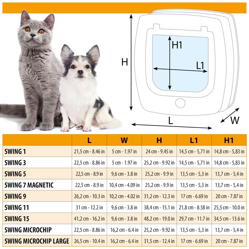 - VERSATILE AND ADAPTABLE: this plastic flap is perfect for cats and small dogs. Thanks to its universal installation, it easily adapts to different structures and materials, metal doors, wood, glass and masonry walls.