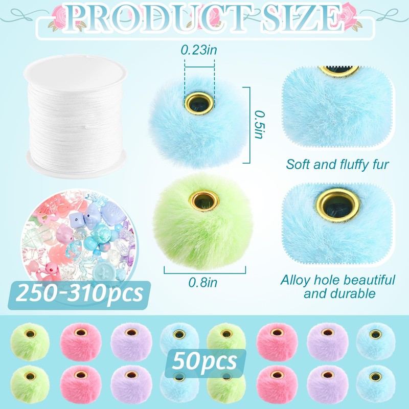 - Versatile DIY: these beads cater to a wide range of needs, suitable for making earrings, keychains, hair accessories, bag decorations, and jewelry; They are a creative choice for embellishing your accessories, sparking your imagination; The combination of plush pom-pom beads and transparent beads adds different atmospheres and styles to your creations