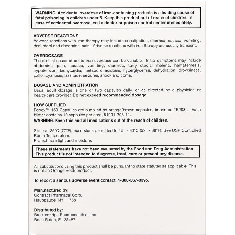 Ferrex 150 Polysaccharide Iron Complex Capsules by Breckenridge - 100 Ea
