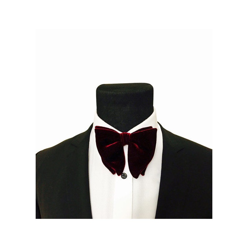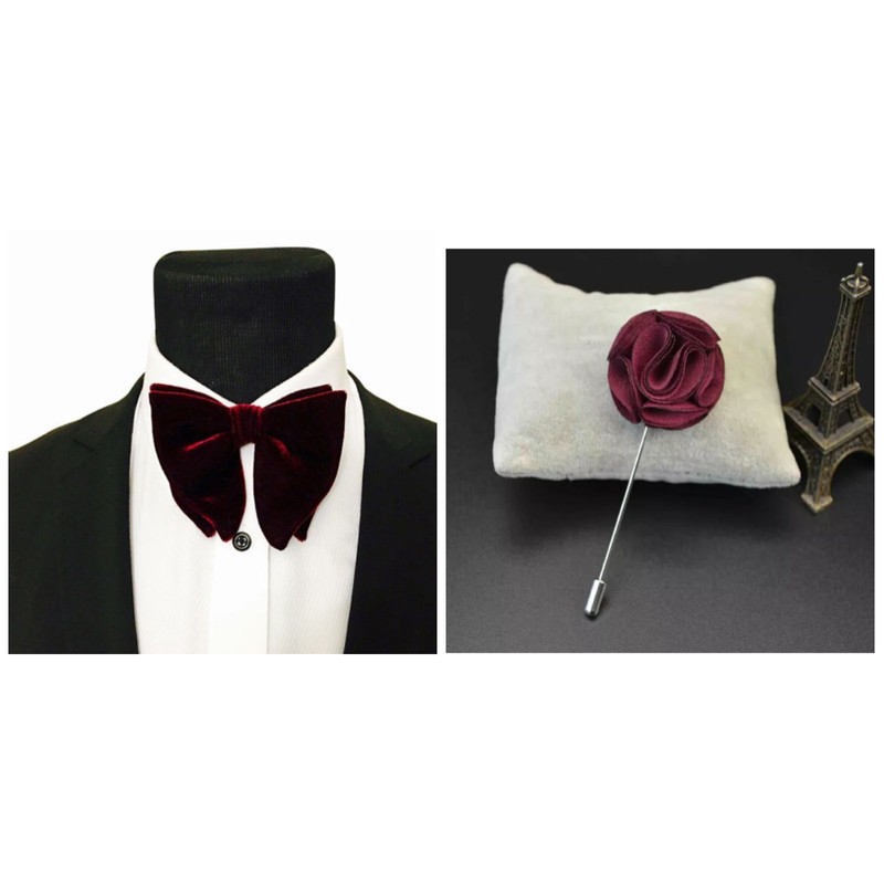 FERUCCI Mens FERUCCI COMBO SET Oversized Bow Tie - Burgundy Velvet Bowtie and Lapel Pin