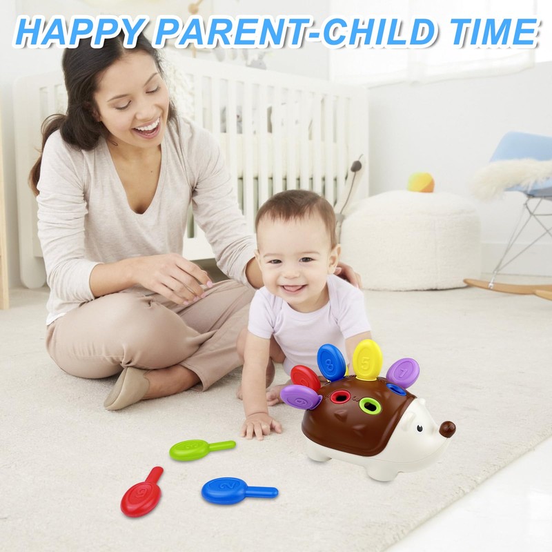 - Educational toy: There are 10 holes on the surface of this hedgehog plug-in game. Each hole is marked with a number from 0 to 9, and the cheese sticks are also marked with corresponding numbers. Each cheese bar has a corresponding hole, and children need to insert the cheese bar into the correct hole depending on the colour and number, thus training the child's ability to recognize numbers and colours.