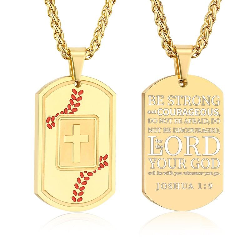Fervia Baseball Bible Verse Cross Necklace for Men Stainless Steel Gold Religious Gift Baseball Sports Jewelry Graduation Easter Gifts for Kids Boys Men(Joshua 1:9)