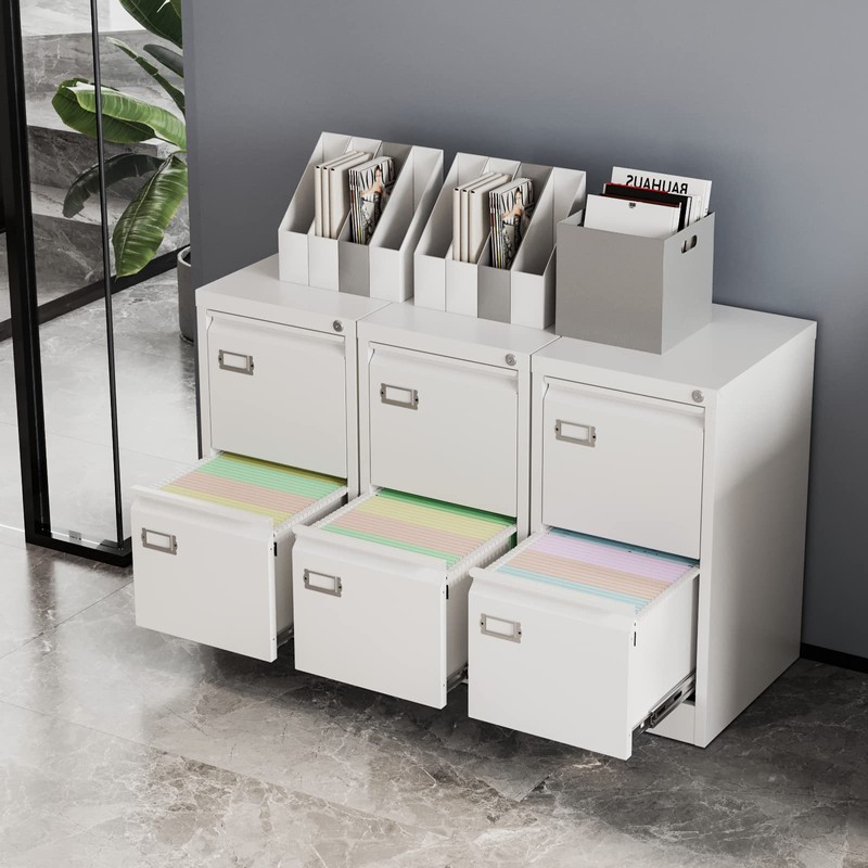 - LOCKABLE 2 DRAWERS FILE CABINET - All the file drawers can be locked by one lock, It is very convenient to control the whole filing cabinet with one key.