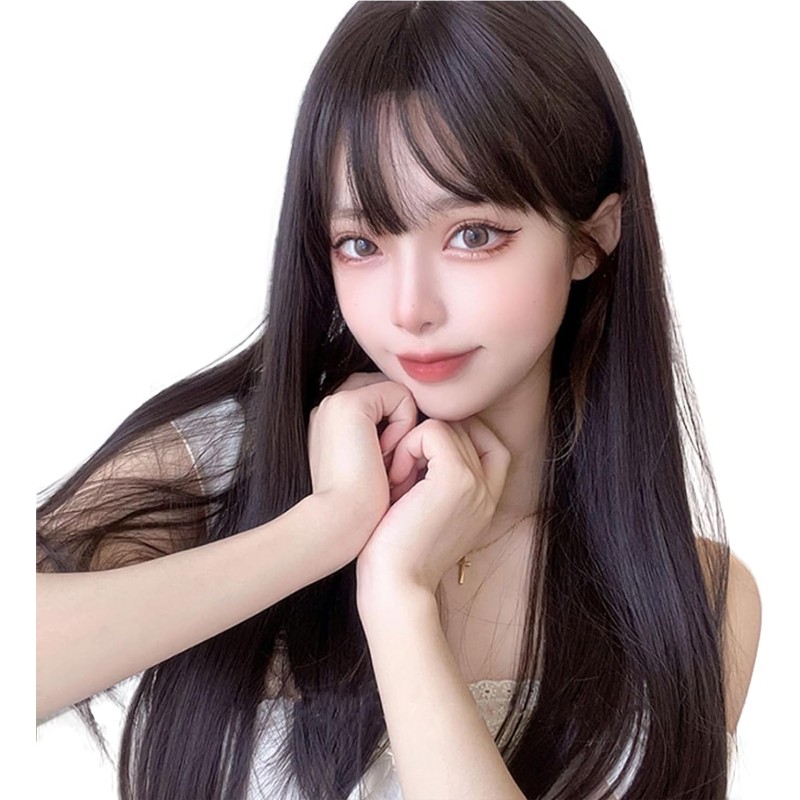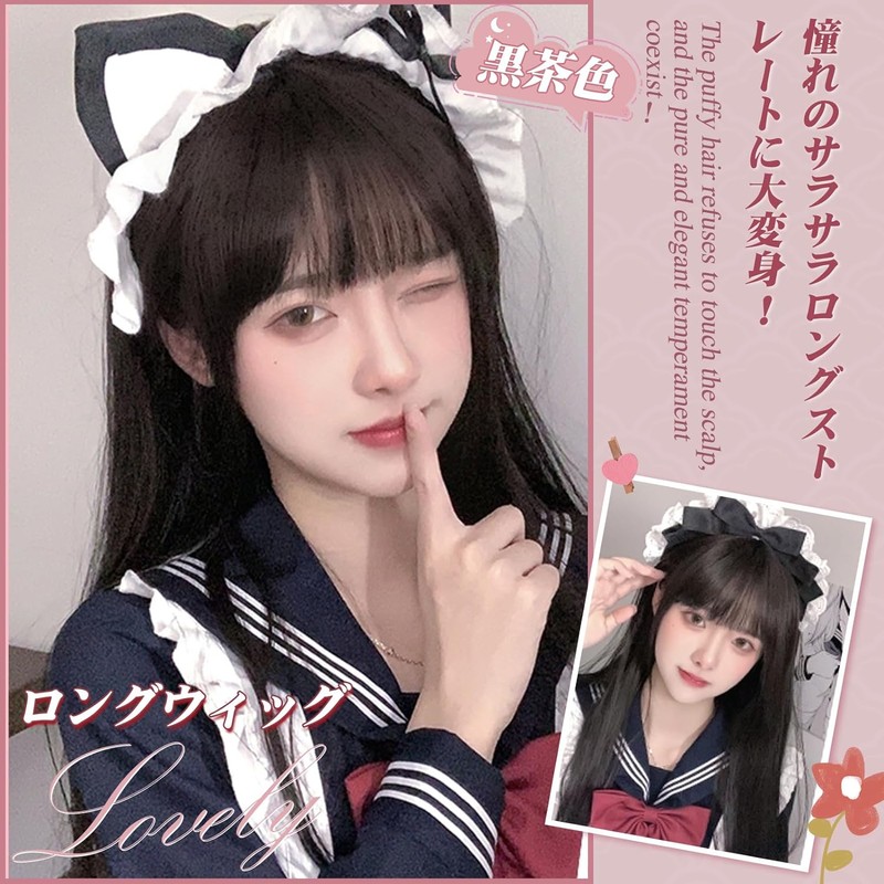 FESHFEN Wig, Long, Straight Full Wig, Cross-Dressing Wig, Women's, Wig, Cross-Dressing Wig, Halloween Wig, Cosplay, Bangs, Harajuku Style, Natural, Small Face, Heat Resistant,
