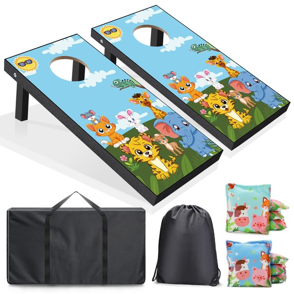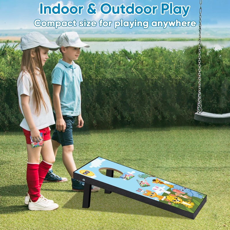 - 【EASY CARRYING】The funny kid's cornhole boards comes with a durable carrying case for easy transport, so you can actually enjoy taking your game on the go. 2ft X 1 ft size is great for all kids!Cute cartoon prints bring children a great visual feast.