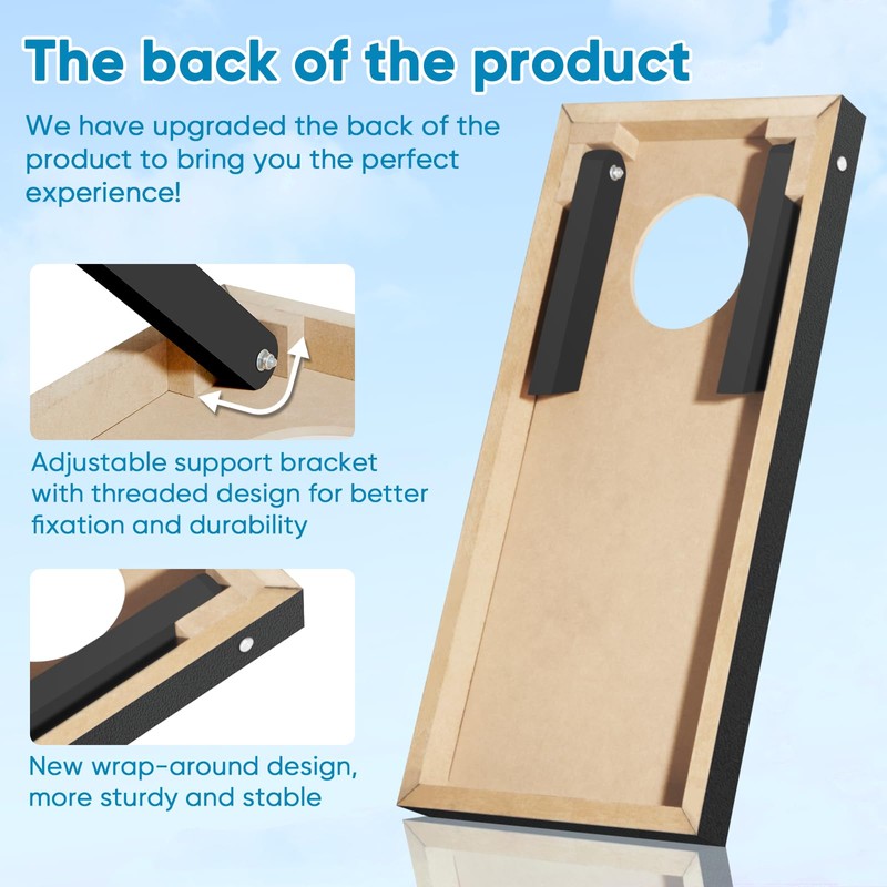 - 【PERFECT GIFT & 100% SATISFACTION 】The MDF wood corn holes outdoor game set is a perfect gift for your friends, children or family. It can be perfectly used in wet lawn, backyards and beach. Your satisfaction is very importance to us, and we offer 24-hour customer service. Any questions, please feel free to contact us, we will try our best to help you to solve your problem.