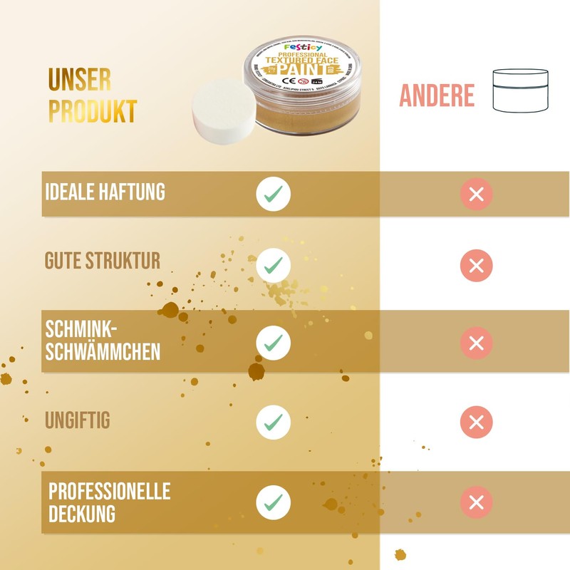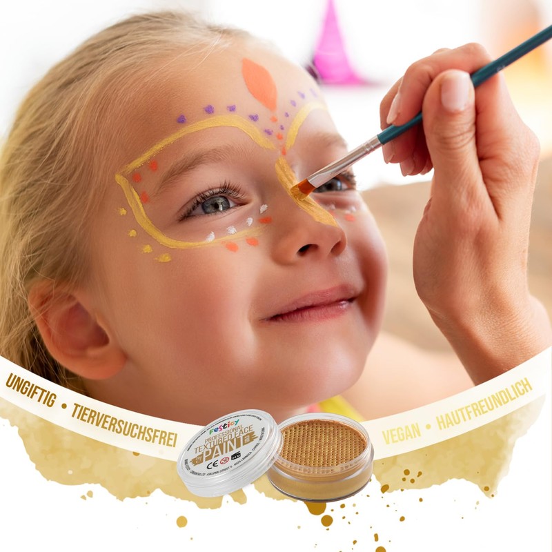 - High-quality theatre make-up: discover the Festicy professional gold make-up - perfect for carnival and fancy dress. Safe and skin-friendly, certified according to EN 71-3 and Reach