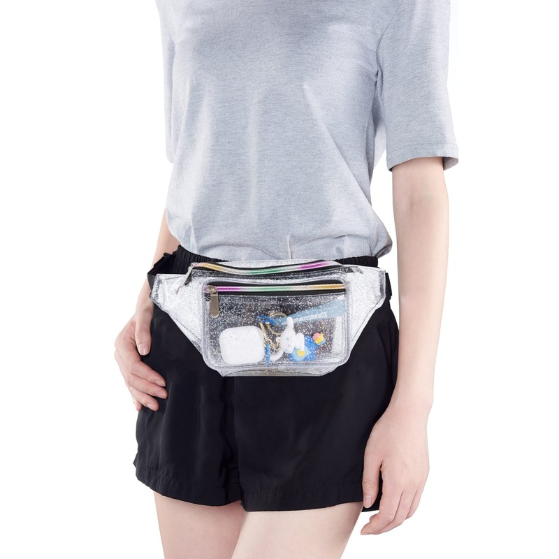 Festival Rave Holographic Transparent Multicolor Fanny Pack for Women Girls Concert Waist Belt Bum Bags -Transparent Multicolor