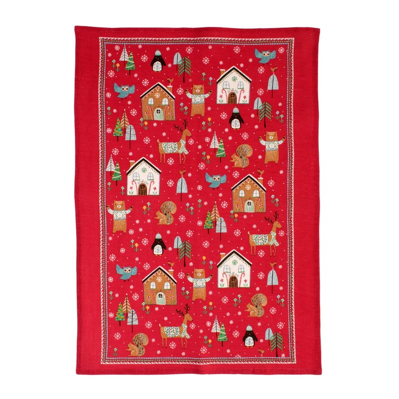 Festive Friends Linen Tea Towel