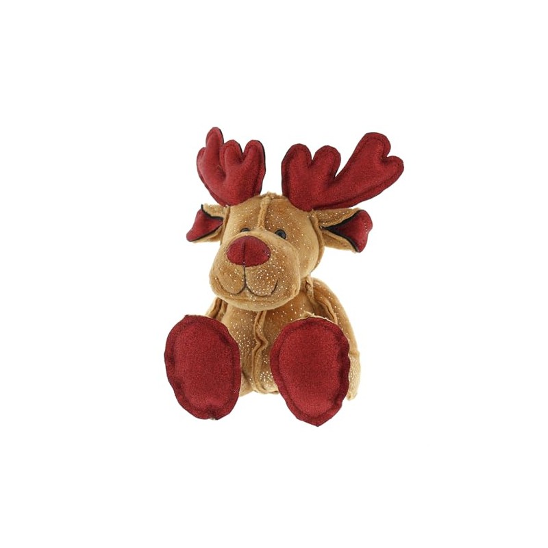 Festive Productions Soft Plush Christmas Reindeer Toy With Red Glitter Antlers 28cm Kids Xmas Bear Gift