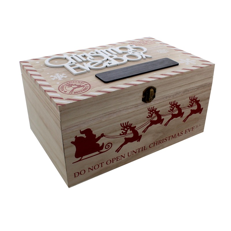 Make Your Christmas Eve Extra Special with our 30cm Wooden Christmas Eve Box - A Charming Keepsake for Magical Moments! Add a touch of enchantment to your holiday traditions with our 30cm Wooden Christmas Eve Box featuring a delightful Santa and reindeer design. Emblazoned with "DO NOT OPEN UNTIL CHRISTMAS EVE," this box is the perfect way to build anticipation and excitement for the big day. The added bonus of a chalkboard name plate ensures it can be personalised for that extra special touch. Celebrate the magic of Christmas Eve with our 30cm Wooden Christmas Eve Box. Order yours today and make your holiday traditions even more special and memorable. Create cherished moments and lasting impressions with this charming keepsake that will captivate your heart and the hearts of your loved ones. Add a touch of magic to your Christmas Eve with our personalised wooden box!