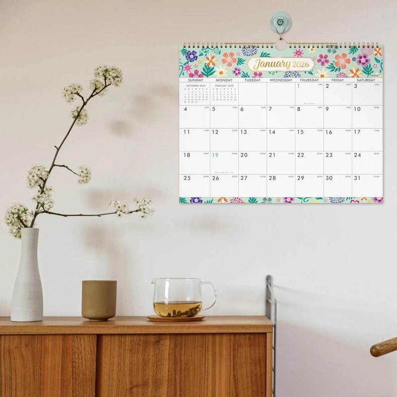 - 2026 CALENDAR WALL - The 2026 wall calendar is from January 2026 to December 2026, great for year-round planning and organizing. Large writing space and lovely flowers design make this calendar more practical.