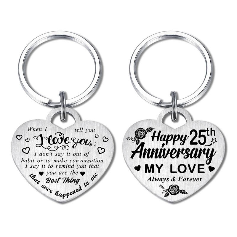 - 25th Wedding Anniversary Gifts - Personalised and heartfelt 25 year anniversary gifts for him her couple. With this romantic 25 year wedding anniversary keyring, tell your love that "Love is not a whim, I'll always love you"