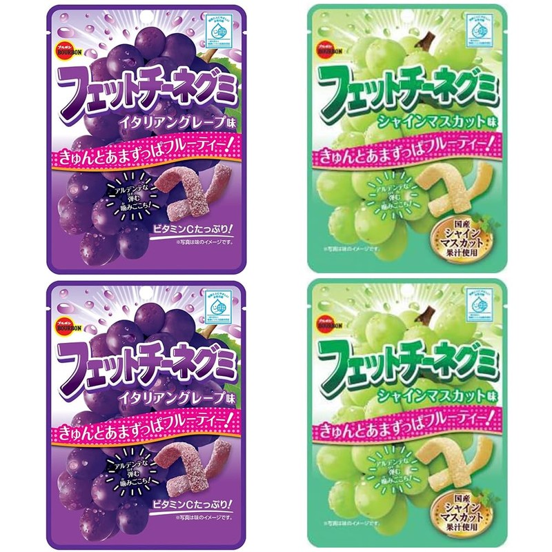 Fettuccine Gummi Set 1.8oz 2Types × 2pcs Japanese Hard Gummy Candy Bourbon Ninjapo