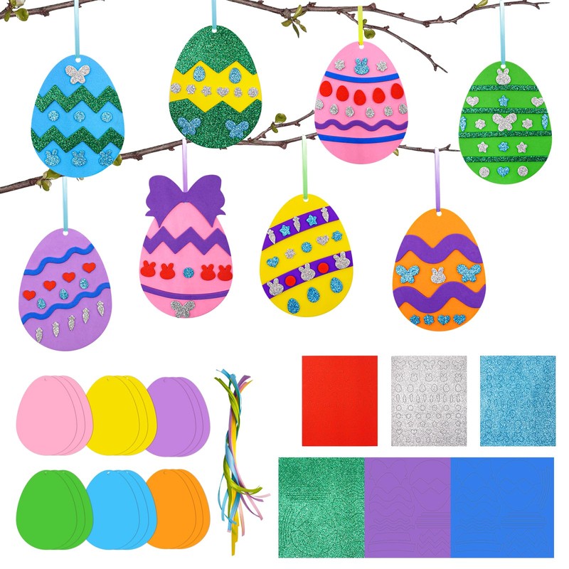 Fettwal Children's Easter Crafts, Pack of 18 Easter Eggs, Foam Rubber Craft Set, Children's Easter Pendant Decoration, Easter Craft Set, Creative Gifts for Easter Decoration