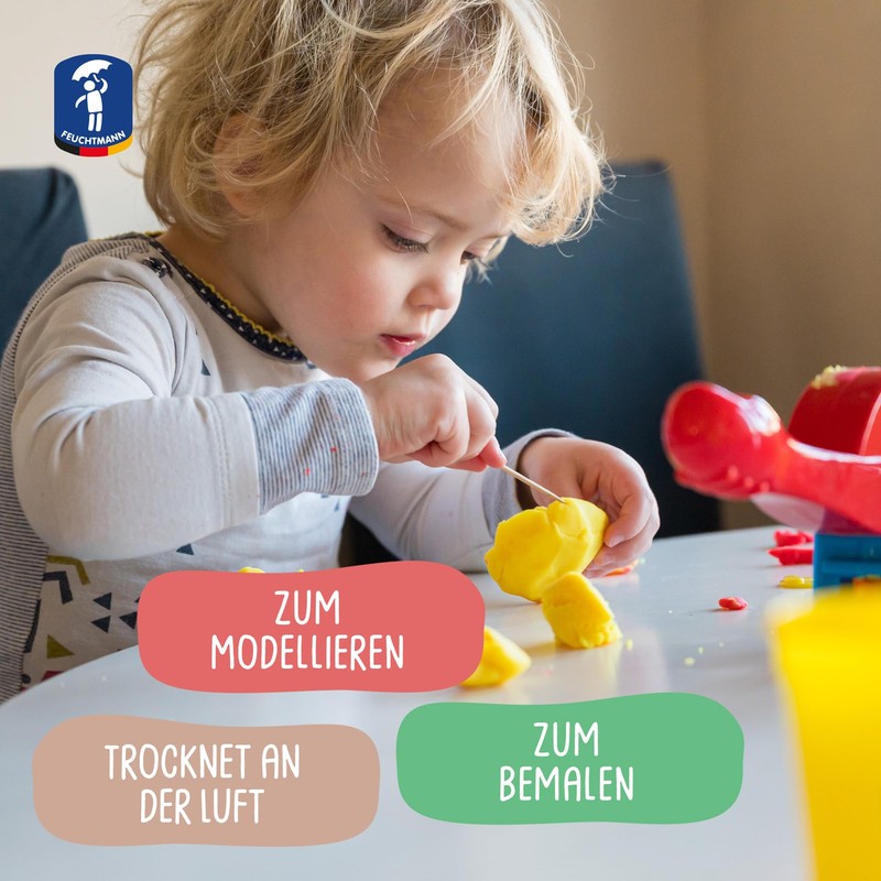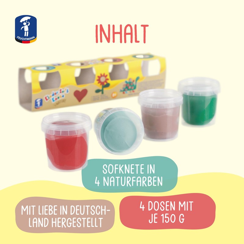 - Kneading fun: Feuchtmann children's soft dough 4 x 150 g, air-drying and paintable modelling clay for children aged 2 and over.