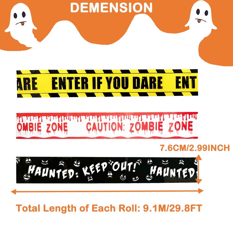 - 【Spooky Tape】You will get 3 styles tapes, the"Enter if you dare",'' Caution: Zombie Zone'' and''Haunted: Keep Out'', they add a lot of interest for decorating and meet your needs.