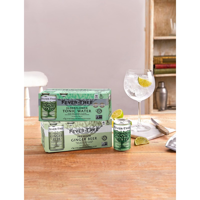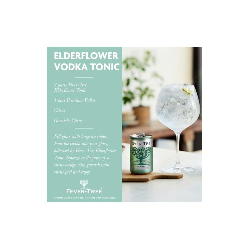 Fever-Tree Fever-Tree Elderflower Tonic Water - Premium Quality Mixer - Refreshing Beverage for Cocktails & Mocktails. Naturally Sourced Ingredients, No Artificial Sweeteners or Colors - 5.1 Fl Oz Cans - Pack of 24