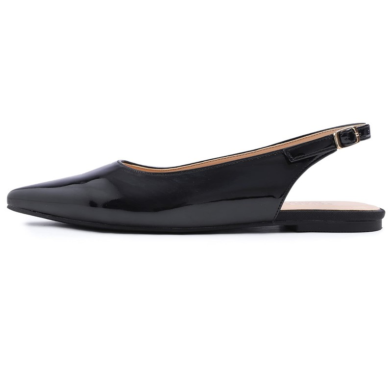 Feversole Womens Flat Pointed Toe Slingback Shoes Ladies Patent Leather Casual Buckle Strap Shoes Size 3.5-7