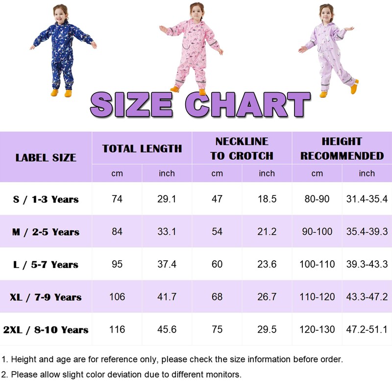 - FUN CARTOON DESIGNS --- Bright and colorful cartoon patterns of the kids rainsuit make the rainy days more cheerful and encourage kids to embrace outdoor play, even in wet weather. It is also suitable for walking to school, or daily wear.