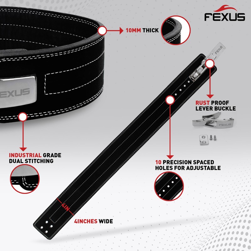 - ✅ Upgraded Steel Lever Buckle: Powerlifting belt’s quick lever closure system is one of the best. It is very easy and fast; belt can be loosened in less than a second. Our Power belt allows lifters to wear a belt up to 4" tighter than the traditional weightlifting belts. Fexus weight lifting lever belt designed to increase strength by increasing the intra-abdominal pressure