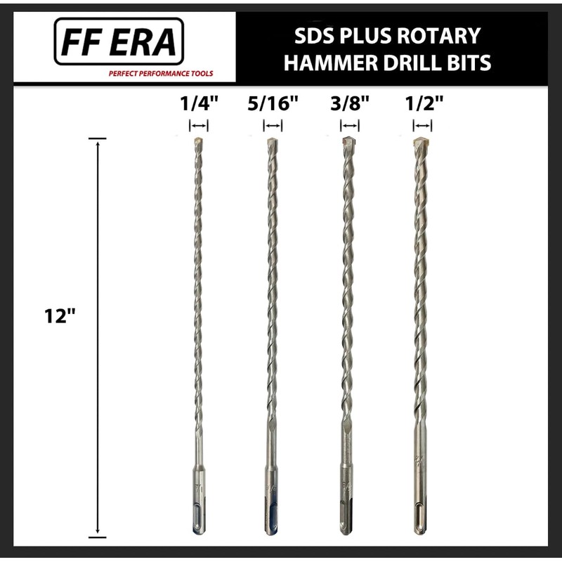FF ERA SDS Plus Drill Bits – 4pcs 12 Inch Masonry SDS Plus Drill Bit Set - Carbide Tipped - Rotary Hammer Drill Bits for Brick, Stone, Concrete (1/4” x 12”, 5/16” x 12”, 3/8” x 12”, 1/2” x 12”)