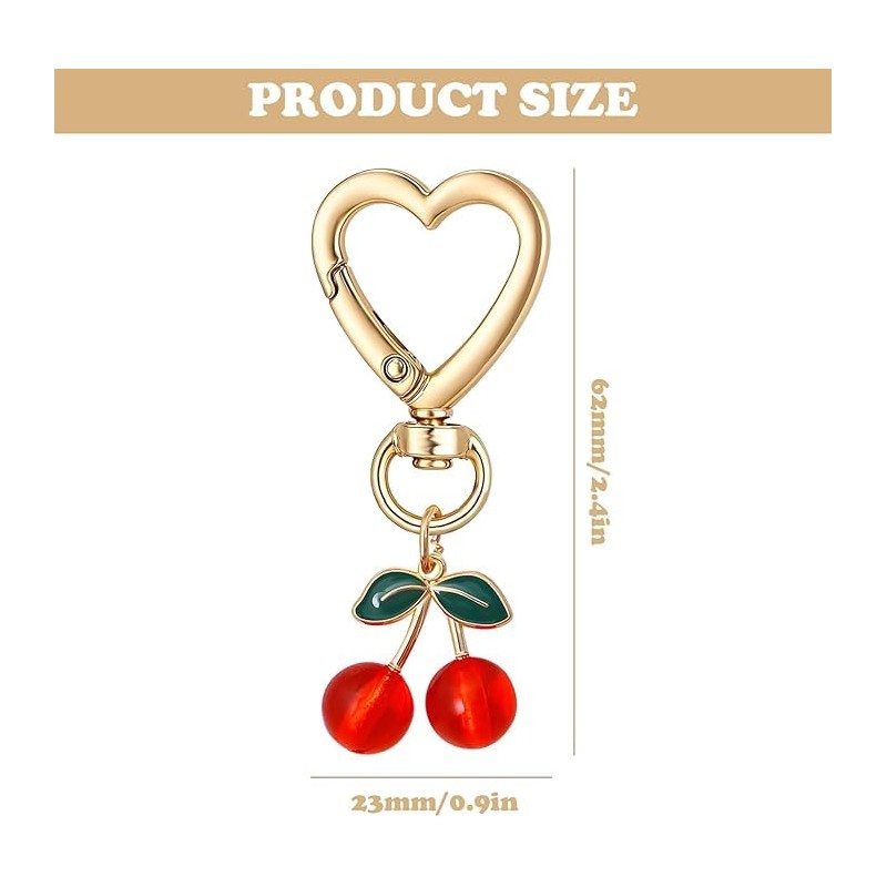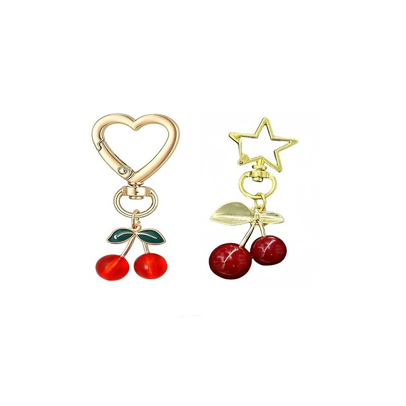 - STYLISH DESIGN: Features two unique cherry charms - one with a heart-shaped clasp in gold tone and another with a star-shaped design, perfect for accessorizing bags and purses