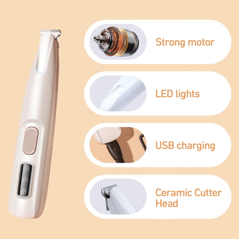 FFJPP Pet Micro Precision Trimmer with LED Light, 2024 Upgraded Multifunctional Pet Shaver, Waterproof Rechargeable Pet Paw Trimmer for Paws Eyes Ears Face and HIPS