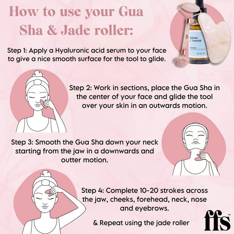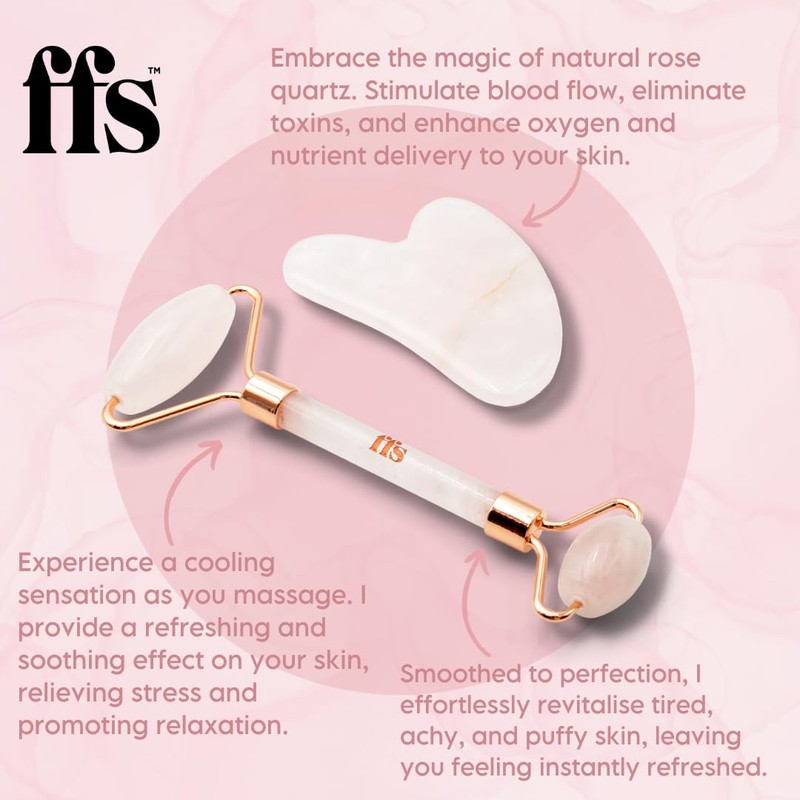 FFS Beauty | Gua Sha Stone & Rose Quartz Massage Roller Set | Dual Calming Rollers | Cooling Sensation | Improves Blood Flow & Revitalises Puffy Skin | Heart-Shaped Design for Contouring
