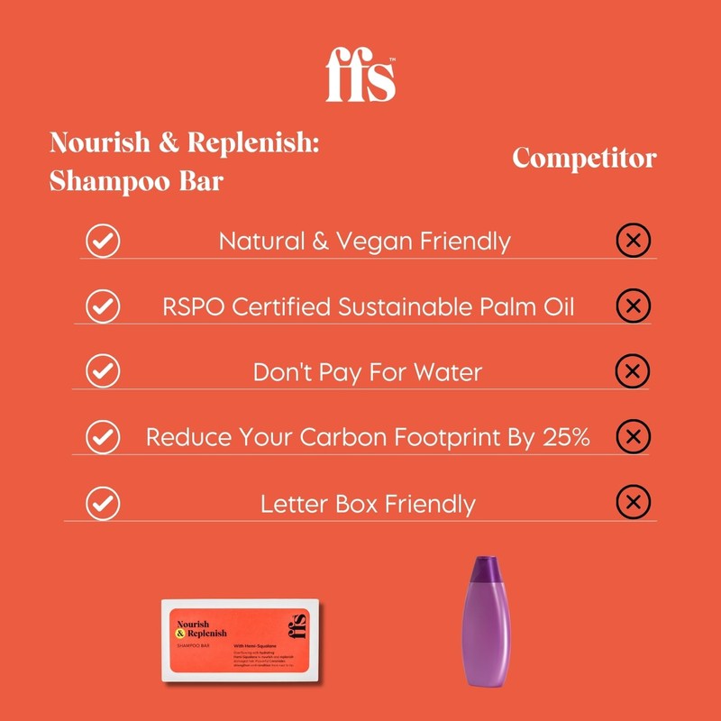 FFS Beauty Nourish & Replenish: Shampoo Bar with Hemi-Squalane - Solid Shampoo, Shampoo Soap Bar, Hair Soap Bar Shampoo