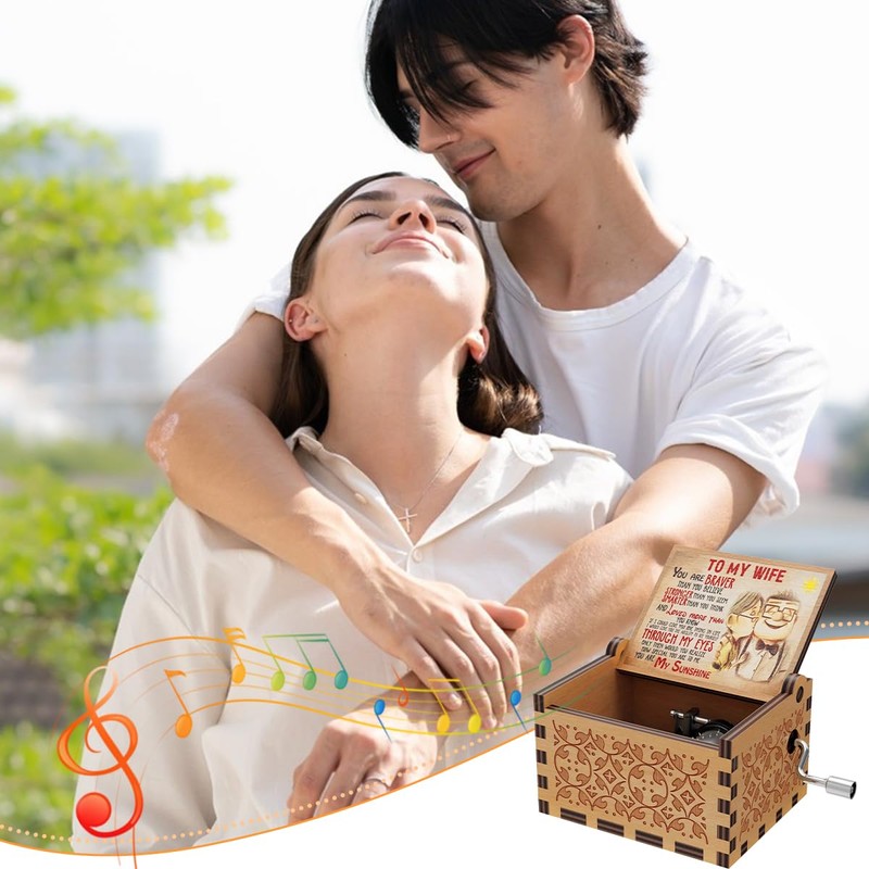 FFTANXS You are My Sunshine Gifts Music box,Gifts for Wife on Her Birthday Wooden Music Box,Gift for Wife Hand Crank Music Box, for Wife for Birthday,Christmas Romantic Valentine's Day