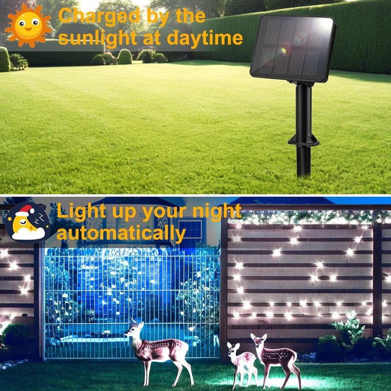 - 🔆【Solar String Lights】39.5Ft/12M solar lights outdoor with 120 super bright LEDs enough to decorate your any occasion. The bright and soft lighting will make you feel very comfortable. The solar panel can transform solar power to electric power directly, no need to replace the battery. Ideal for decorating your gardens, court yard, pergola, fence,patio, balcony, lawn, decks, porches,tree etc.
