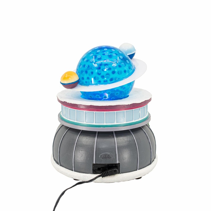 - Animated Saturn and Moons: Sitting atop the planetarium is a beautifully detailed blue Saturn-like planet with a ring, along with two orbiting moons. The structure animates with a graceful spinning motion, adding a dynamic and space-inspired element to your Christmas village display platforms.