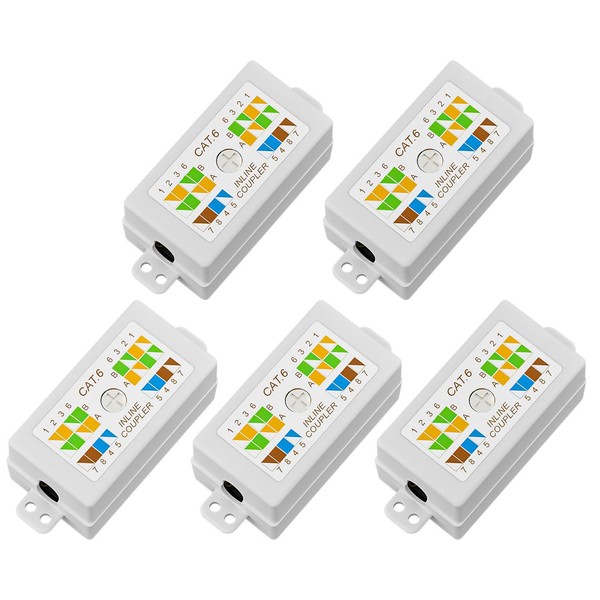 FGB RJ45 Cat6 Junction Box, Inline Punchdown Krone Coupler Joiner for Cat6/Cat5E/Cat5 Ethernet Network Cables, 5-Pack