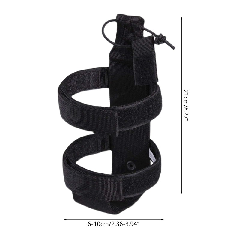 - This versatile water bottle holder is a must have for outdoor enthusiasts. Its adjustable buckle designs ensures a secure fit for different sizes of bottles and cups, while the nylon material provides long lasting protections.