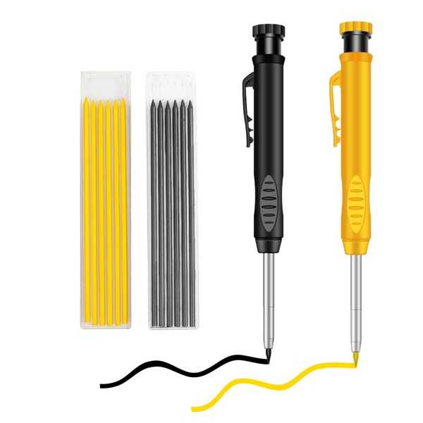 - 【Multi Scenario Applicability】:The carpenter mechanical pencils suitable for materials such as paper, wood, plastic, etc. The black pen core is suitable for long-term marking, the yellow pen core is suitable for temporary marking, and the adjustment function meets the thickness requirements