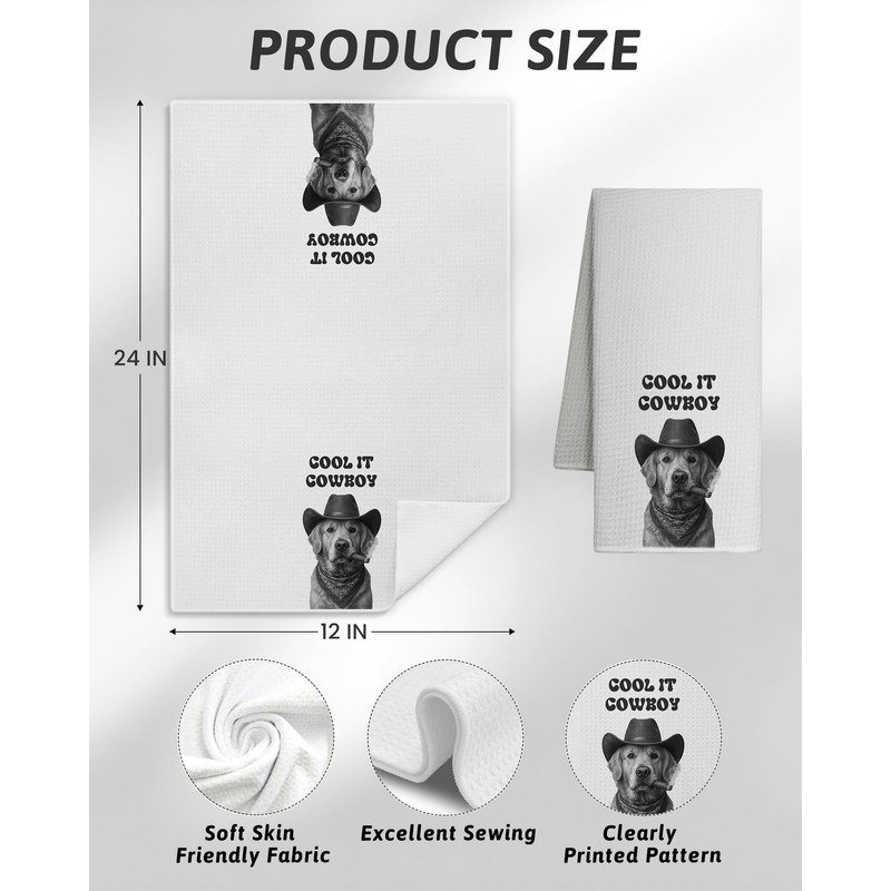 FGFK Funny Cowboy Golden Retriever Kitchen Towels, Gifts for Golden Retriever Lovers Dish Tea Towels, Retro Western Dog Hand Towels for Bathroom Kitchen, 16x24 Inch