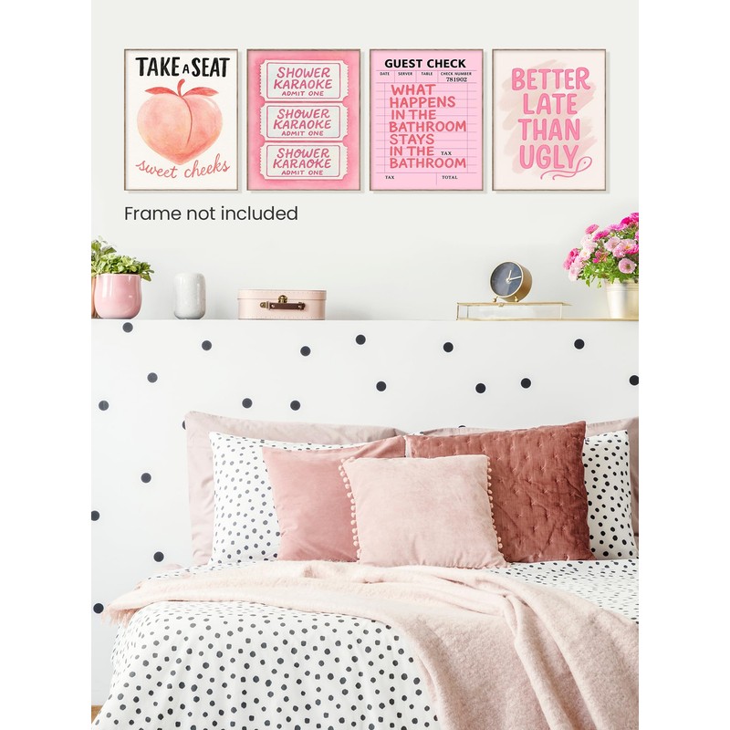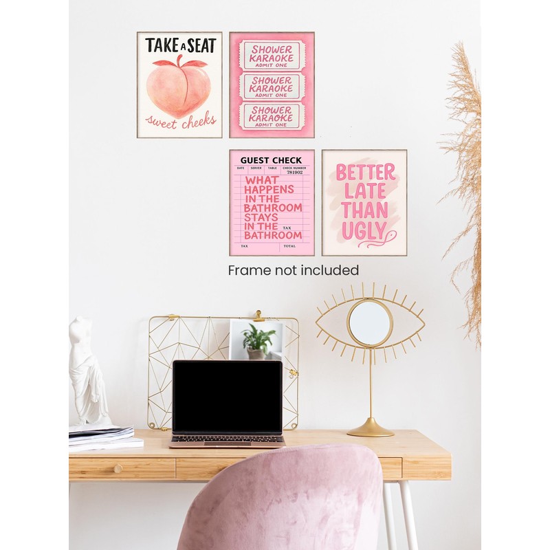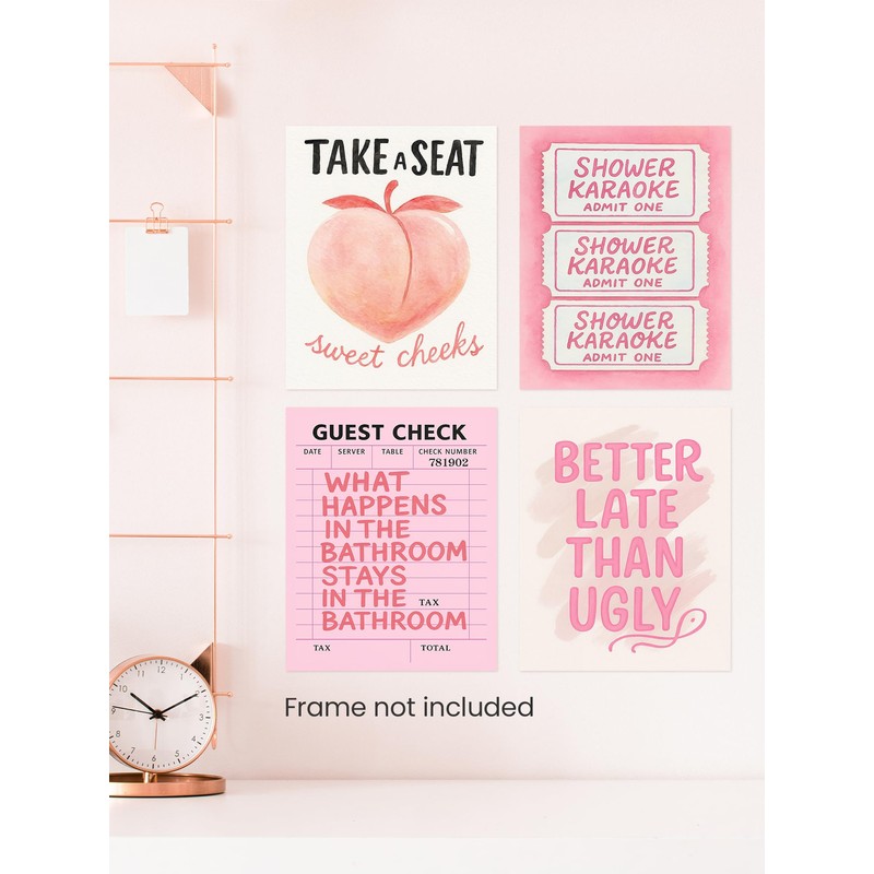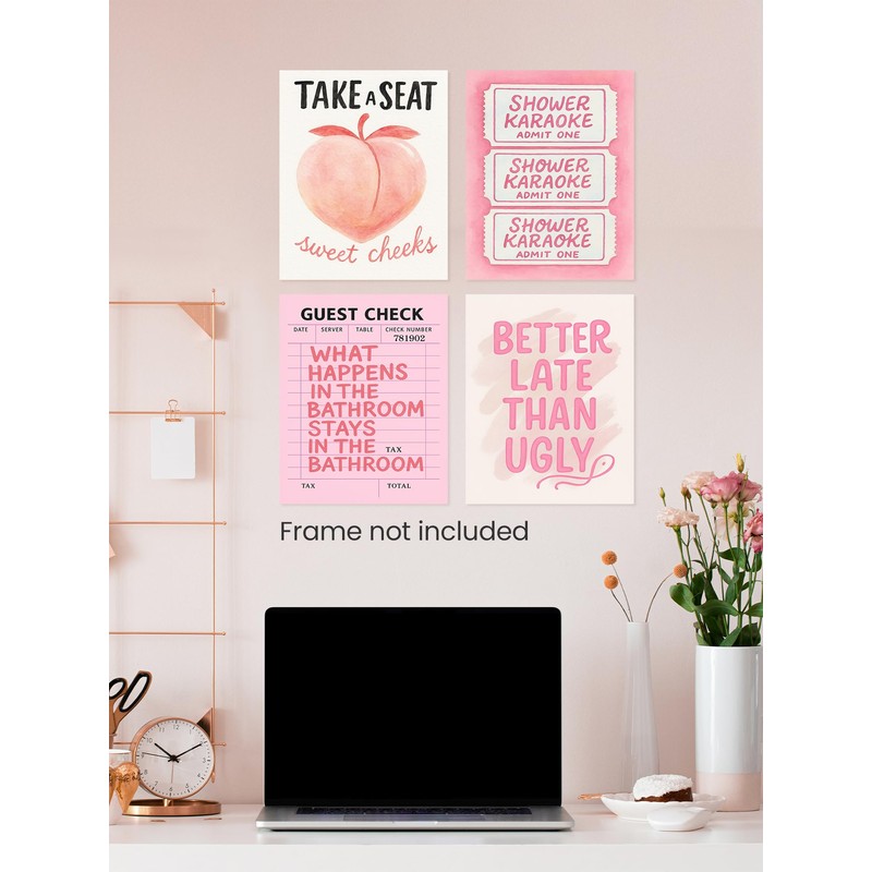 FGFK Pink Preppy Bathroom Wall Art Prints Set of 4, Sweet Cheeks Shower Karaoke Guest Check Better Late Than Ugly Posters Pictures Wall Decor for Girls Bathroom Washroom, 8x10 Unframed