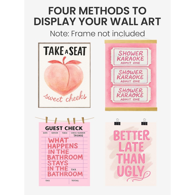 - Standard 8x10 Size Unframed prints fit standard frames or can be taped directly to walls, easy to display in bathrooms or dorms.