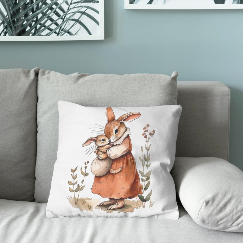 FGFK Rustic Mama and Baby Bunny Pillow Covers 18x18, Bunny Rabbit Gifts for Women Girls, Gifts for Bunny Lovers, Cute Woodland Animal Pillow Covers for Kids Room Nursery Playroom Decor