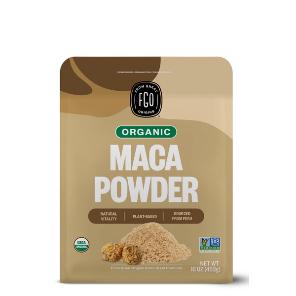 FGO Organic Peruvian Maca Root Powder, 16oz Bulk Resealable Pouch, Sourced from Peru, Packaging May Vary (Pack of 1)
