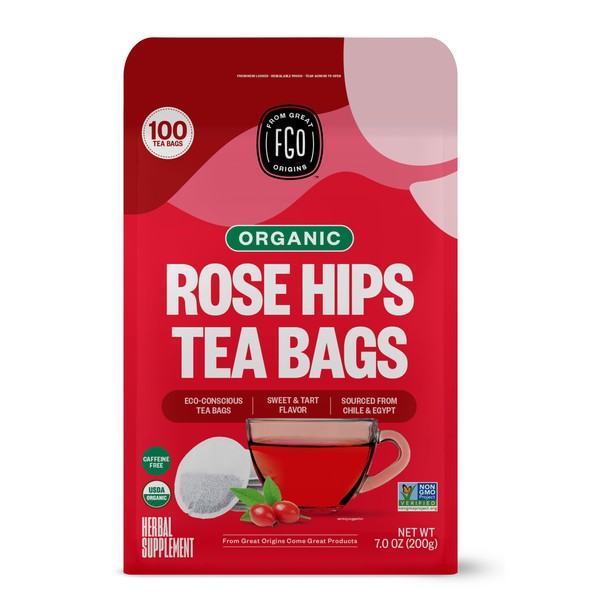 FGO Organic Rosehips Tea, Eco-Conscious Tea Bags, 100 Count, Packaging May Vary (Pack of 1)