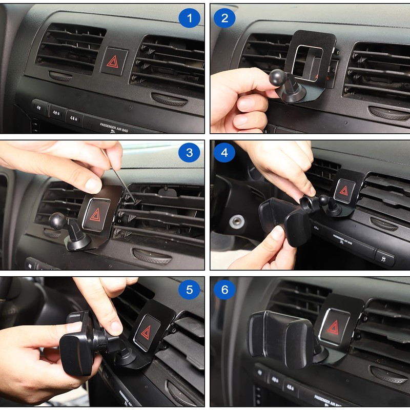 - CONVENIENT & EASY INSTALLATION: Handsfree phone stand is easy to install and use, No drilling is needed. Self adhesive design. Wipe clean your center console air conditioner panel around in advance, and press firmly to ensure a good grip of the adhesive. And that is convenient to navigate, pickup phone calls. You can focus on your drive.
