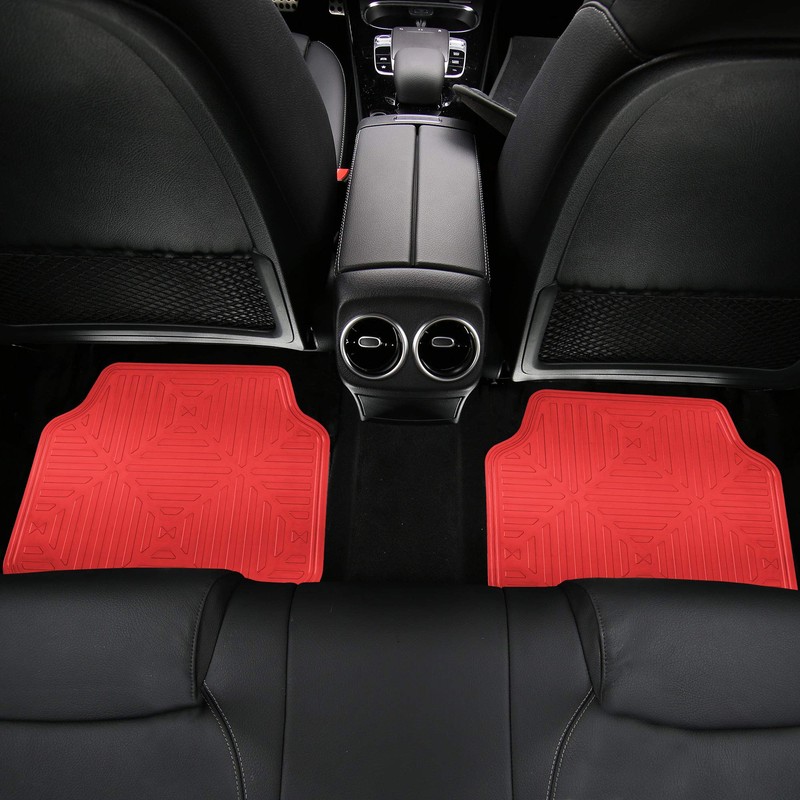 FH Group Automotive Floor Mats - Heavy-Duty Metallic Rubber Floor Mats for Cars, Universal Fit Full Set, ClimaProof Floor Mats, Trimmable Floor Mats For Most Sedan, SUV, Truck Floor Mats Red