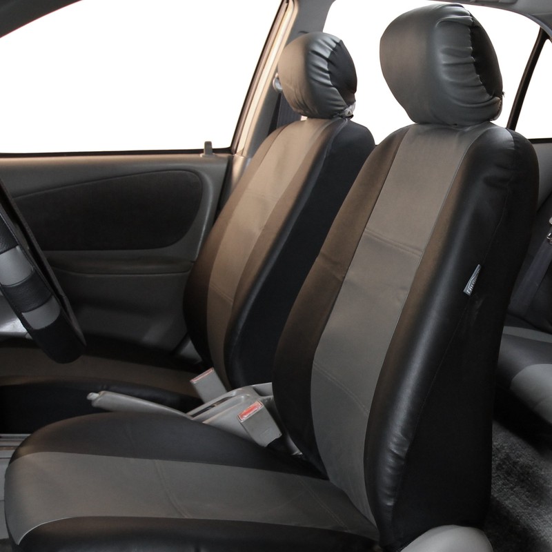 FH Group Car Seat Covers PU Leather Full Set Automotive Seat Covers Front Set and Rear Solid Bench Gray Black Seat Covers w. Gift Universal Fit Interior Accessories for Cars Trucks and SUVs