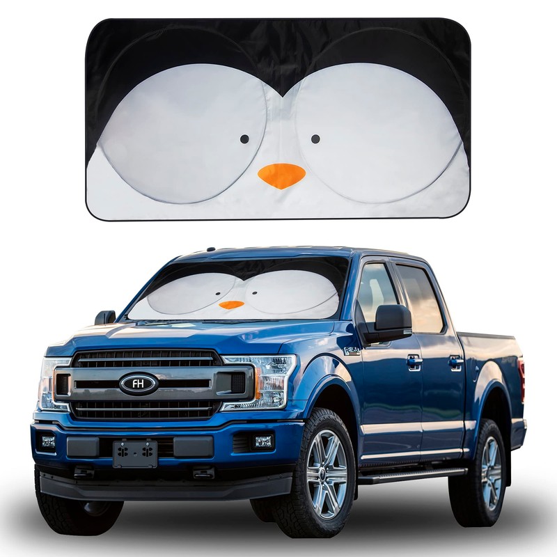 FH Group Foldable Penguin Print Car Windshield Sun Shade - Portable Reflective Sun Visor for Sedans, SUVs, and Trucks Black