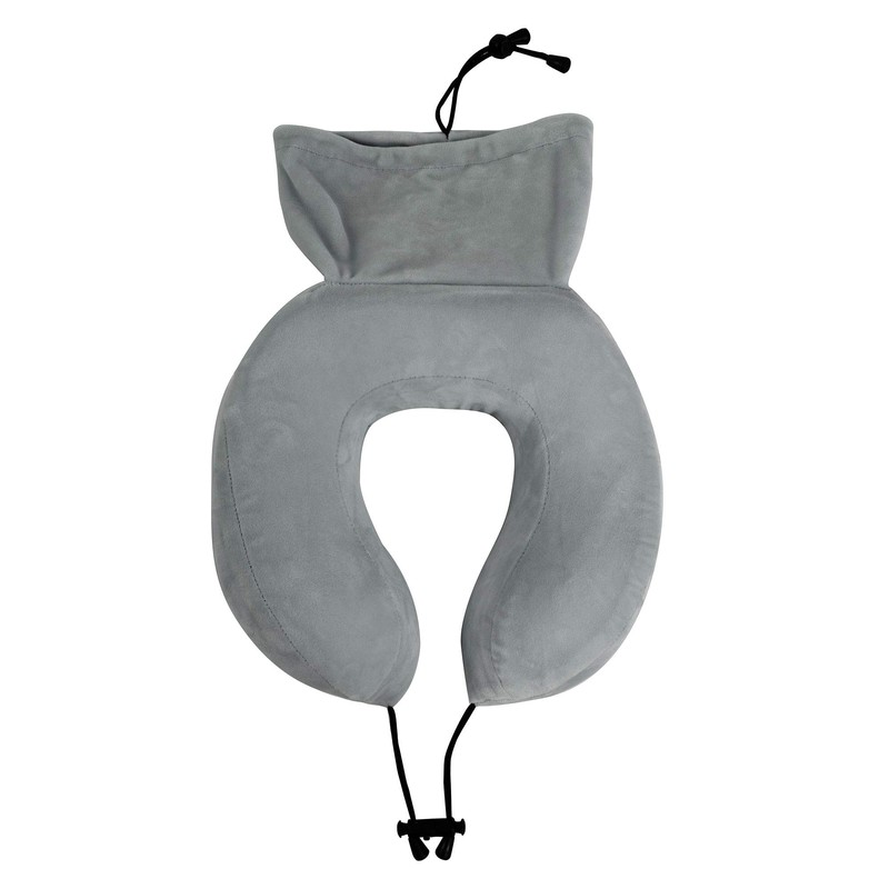 FH Group Ultimate Comfort Memory Foam Support Travel Neck Pillow Plush Velour Gray