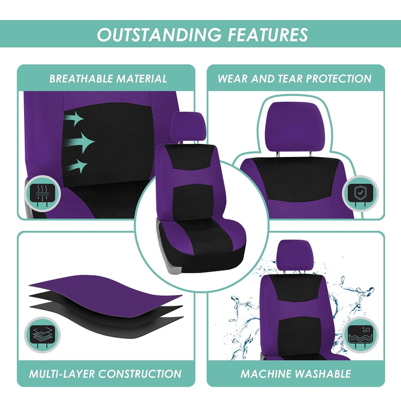 - UNIVERSAL FIT CLOTH SEAT COVERS FOR CARS, SUVS, TRUCKS: These universal car seat covers offer a secure fit in sedans, trucks, and SUVs while protecting against spills, dirt, and pet hair. Perfect for drivers seeking full coverage seat protection with durable fabric in stylish options like black, red, blue, purple, pink, or grey to match any interior.