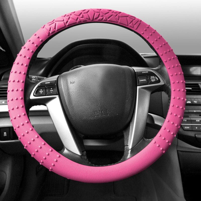 FH Group Universal Fit Silicone with Nibs and Pattern Massaging Grip Steering Wheel Cover Fits Most Cars, SUVs, Trucks, and Vans Baby Pink