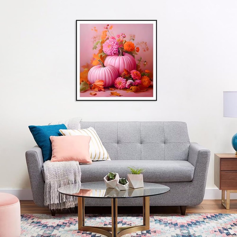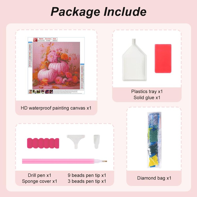- 【Pumpkin Diamond Painting】: This is a diamond art composed of Pink flowers and Autumn Pumpkin elements